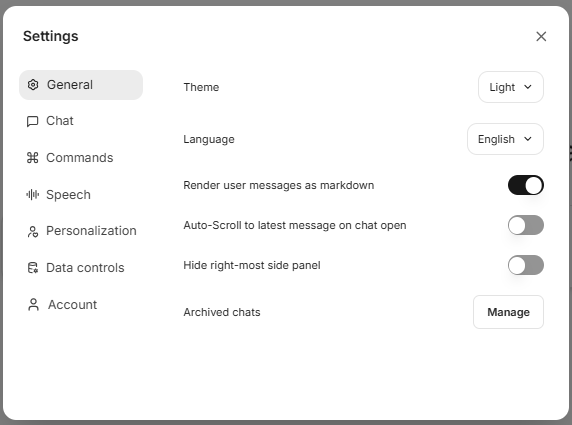 - Render user messages as markdown – Toggle whether your messages will display markdown formatting.