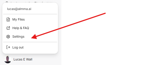 To open Settings, click on your profile menu in the upper-left or upper-right corner (depending on your interface layout). From the dropdown menu, select Settings.