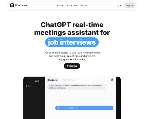 Navigating the complexities of technical interviews just became more manageable with the introduction of Chadview. Tailored specifically for individuals and professionals in the tech sphere, Chadview offers seamless integration with ChatGPT’s advanced AI to lend you a smart companion during your interviews. This tool is exceptional for clarifying complex technical concepts on the fly, offering explanations, or even validating technical facts. Chadview acts as your personal assistant, helping you to ace technical interviews or conduct them with finesse, ensuring that the depth of technical expertise is no longer a barrier to success.