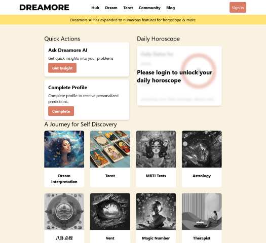 Dreamore is your personal nocturne navigator, an AI app designed to cast light upon the shadows of your sleep-induced narratives. In the silent theatre of the night, our dreams play out in vivid imagery and cryptic plots, often dissipating before they can be understood. Dreamore offers dream aficionados a swift and interactive method to capture these fleeting stories, providing a platform to not just recall but to comprehend and visualize the intricate web of dream meanings.