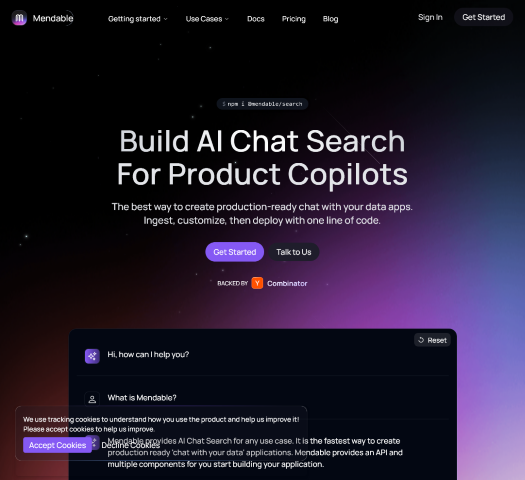 Mendable is the AI platform at the vanguard of transformative solutions, catering to a spectrum of needs across various domains. It stands as a comprehensive tool capable of addressing a wide array of challenges faced by individuals and organizations alike. By leveraging the most advanced AI technologies, Mendable intelligently navigates complex landscapes to provide customized, result-oriented actions that significantly improve outcomes.